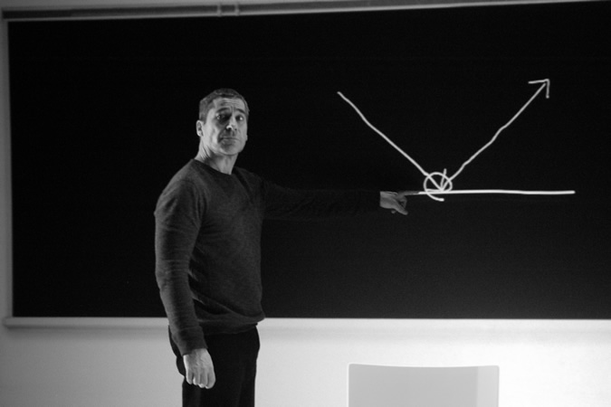 Un professeur de physique est habité de terreurs diurnes depuis les décès consécutifs de son père et de son frère. Ses terreurs diurnes surgissent à tout moment, ébranlant sa logique et éventuellement son rapport aux autres. Un monde désert, un « no man's land » vide et sans frontière l'habite entre ces dérapages. Le déclencheur: l'anéantissement du père et du frère qui ouvre la voie à la possibilité de son propre anéantissement. Prisonnier d’un univers en dissolution constante et en dislocation du « MOI », cet homme va se redécouvrir à la troisième personne, comme si, déjà, il n’était plus. ‘L’œuvre est à la fois un combat contre un destin inéluctable et une quête identitaire dans la relation père-fils.’ explique Louise Naubert.