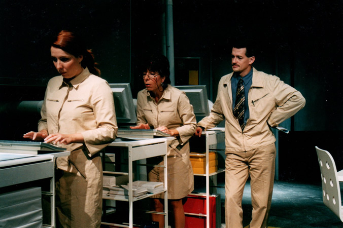 “Fidèle aux spectacles précédents de la compagnie, la scénographie est impressionnante. La mise en scène exploite le décor splendide où des tuyaux blancs encadrent cet environnement impersonnel, ce bureau stérile et sans vie.”